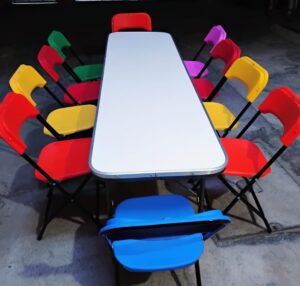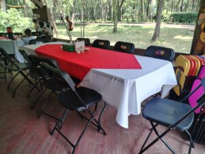 Incluye 10 sillas plegables y mantel blanco, cubrimos desde eventos familiares a eventos corporativos.